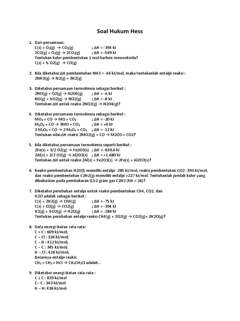 Soal Hukum Hess - Modul Rumus Soal Hukum Hess Wardaya College : 6 agustus 2020 oleh syarief.
